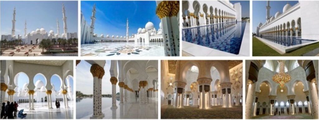 The Sheikh Zayed Grand Mosque located in Abu Dhabi, capital of UAE, is one the world’s largest mosques and a massive architectural work of art that intentionally blends different Islamic architectural schools. It features 82 domes, more than 1,000 columns, 24-carat-gold gilded chandeliers and the world’s largest hand-knotted carpet. The main prayer hall is dominated by one of the world’s largest chandeliers.The mosque was built under the guidance and supervision of Sheikh Zayed bin Sultan Al Nahyan, the former president of the UAE, who was buried here after his death in 2004…